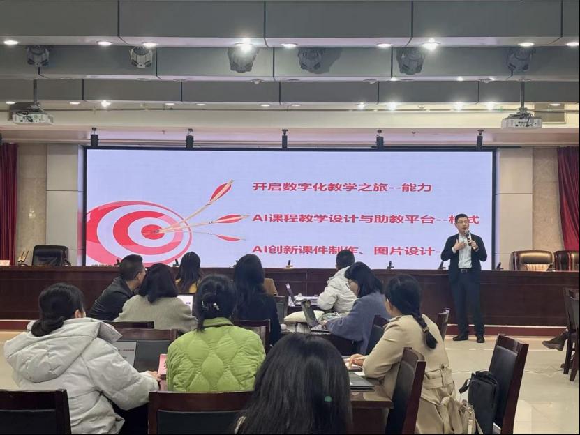 李红艳在开场致辞中强调,数字化智能化是新时代教育教学发展必然趋势,本次工作坊是学校课堂教学能力靶向提升工程的核心环节,既是对接省教创赛人工智能赛道、贴合省级智慧课程建设标准的关键举措,也为我校一流课程建设、教创赛备赛筑牢能力基础,希望参训教师学有所获、学以致用。